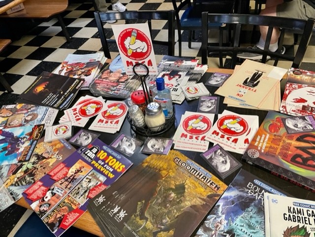 If you get a chance to come out to the meeting, be sure to bring some examples of your work or what you’re currently working on, and a few bucks to order off the menu. The meetings are free to attend, you don’t have to be a member, and we love seeing what art others are doing.