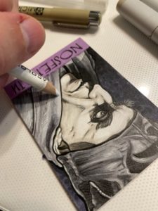 Once done, I applied a light spraying of workable fixative and signed the back of the cards.