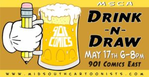 I used various of design markers from of our MSCA art stash we have at 901 Comics East our friend Vicky Neyman gifted us for our Sat-Art-Days and Drink-N-Draw events. After the color work I used a black Pigma Micron pen to do the line work.