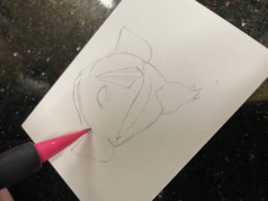 Once I was done with the colors I then started to do the black line art with a Pigma Micron pen– usually an 03 or 01 depedning on the details.