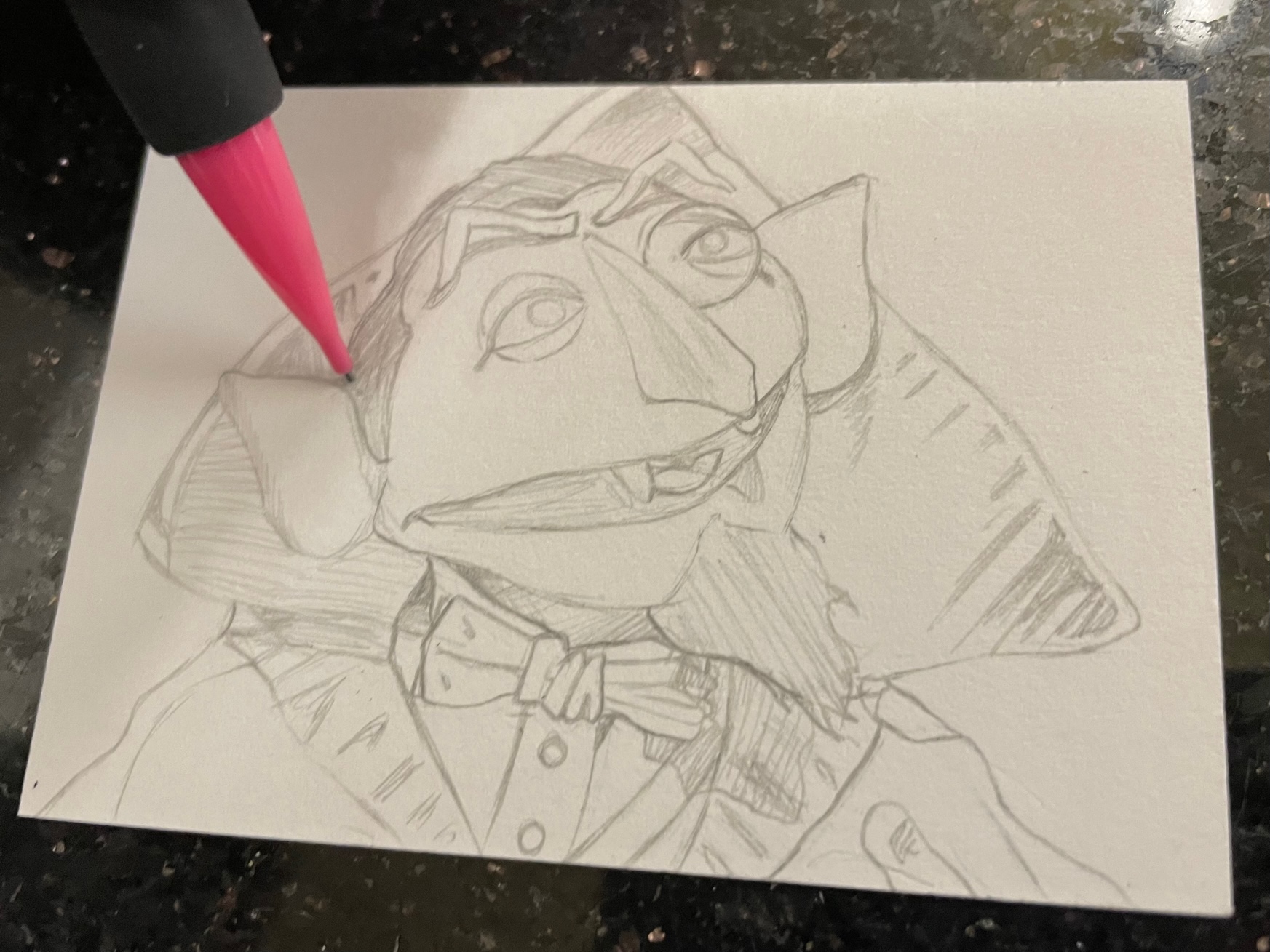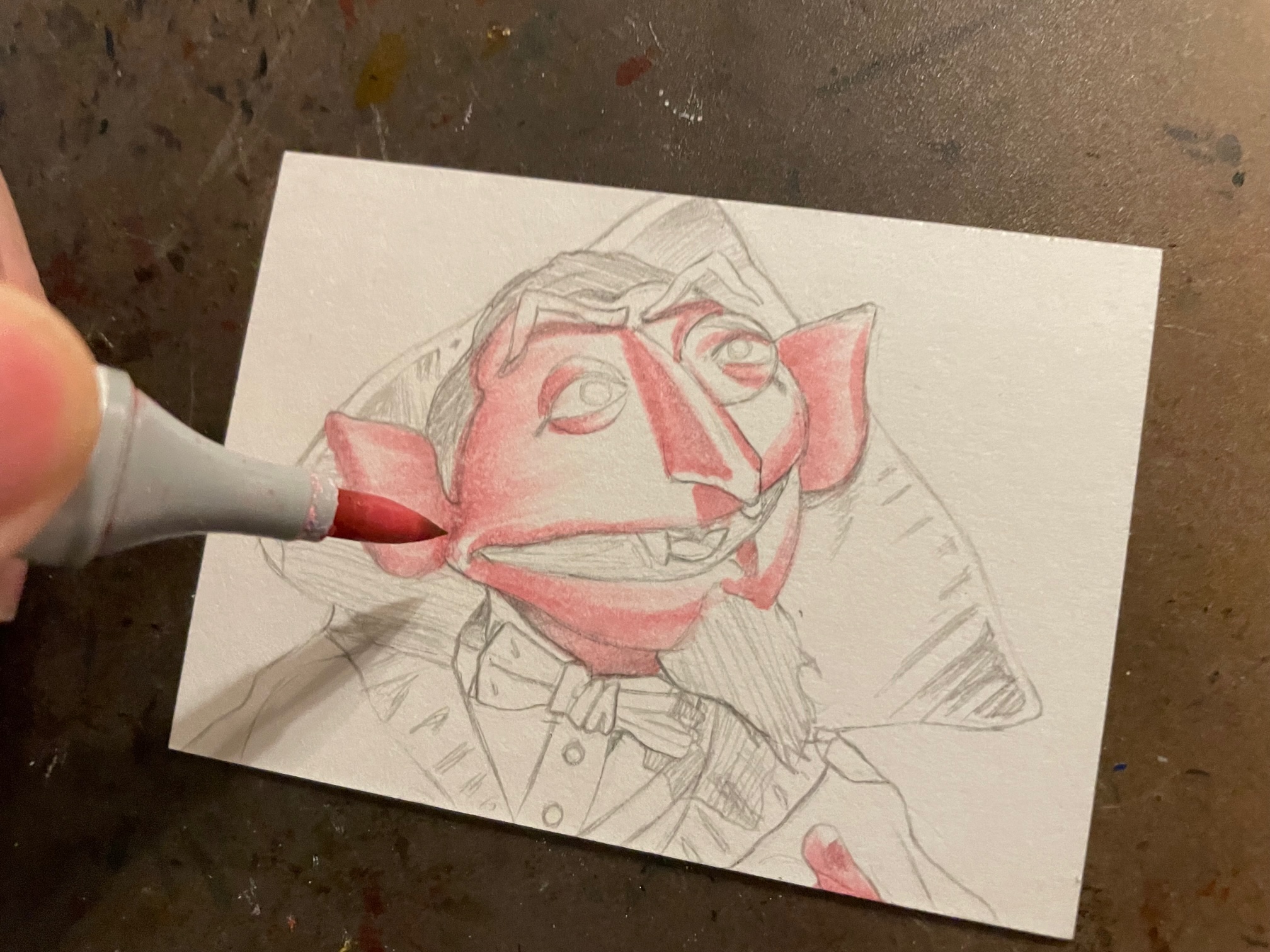 I started off drawing the Count sketchcard with a click HB lead pencil on a Mid-South Cartoonists Association blank.