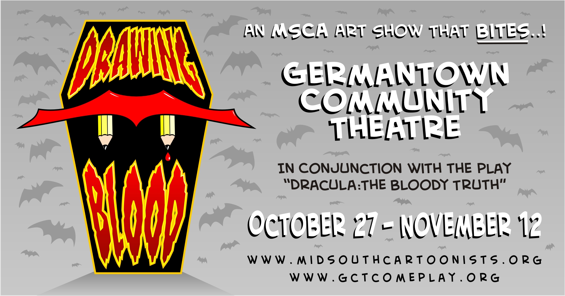 If you’d like to see more of my vampire artwork in person be sure to slide by the MSCA “Drawing Blood” art show and check out my two- two Monsterpieces…ah, ah, ah!