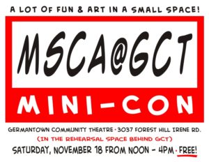 Kev, myself, and other members of the MSCA will be back out at GCT for our closing reception and mini-con on Saturday, Nov. 12th from noon-4pm.