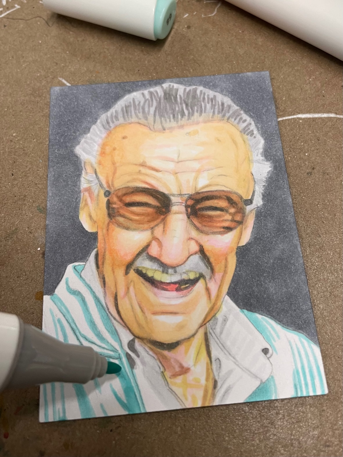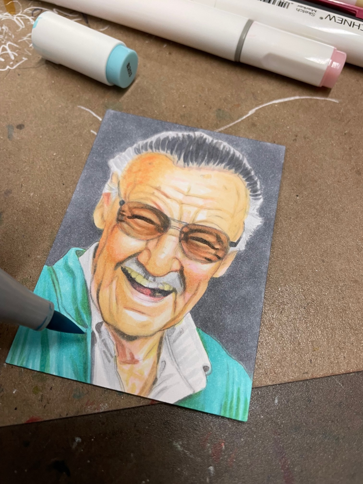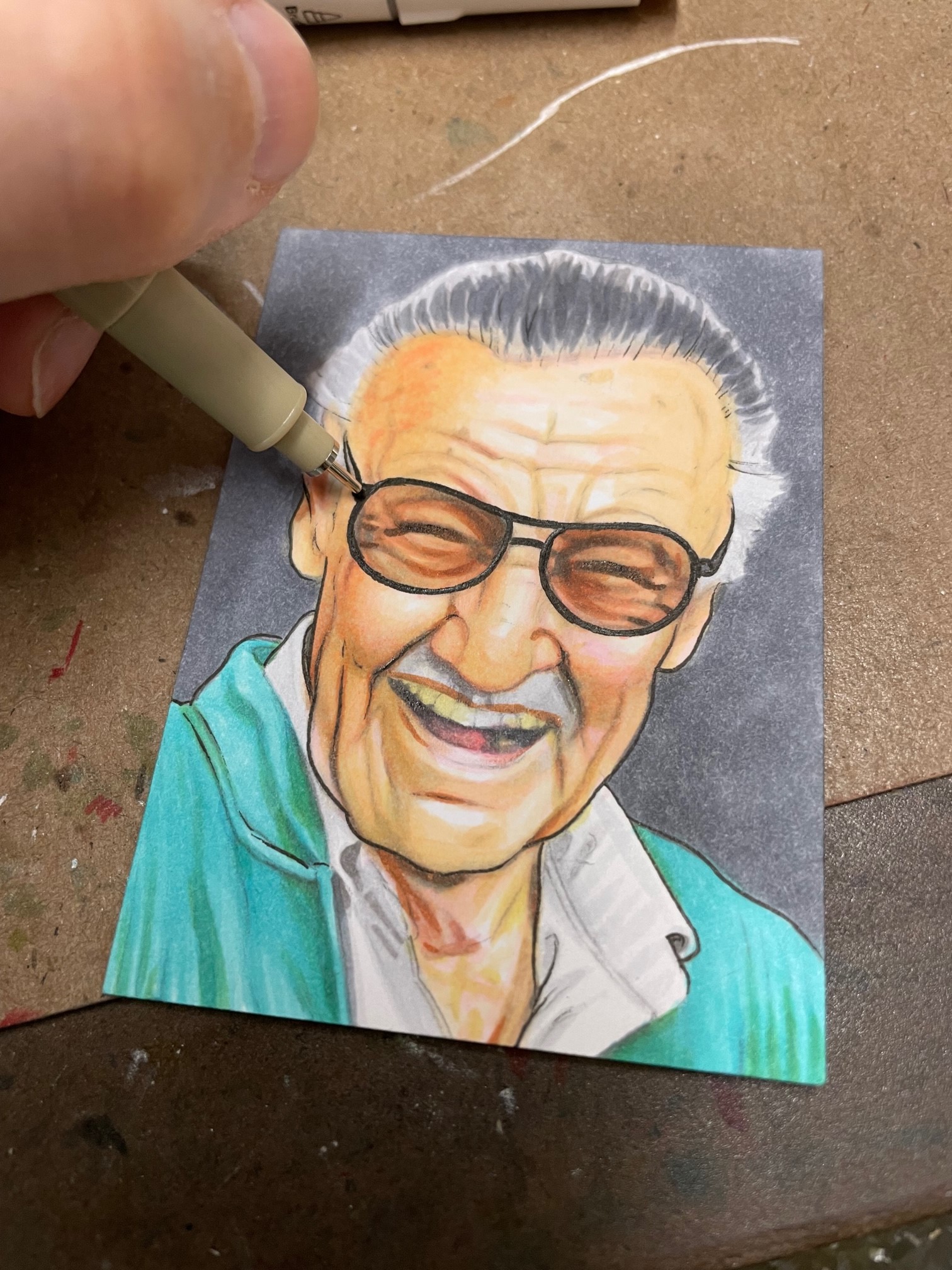 Jaime orcered a bunch of sketchcard blanks for the store’s upcoming mystery boxes, so I did one for his Stan collection, and to test out the cardstock.