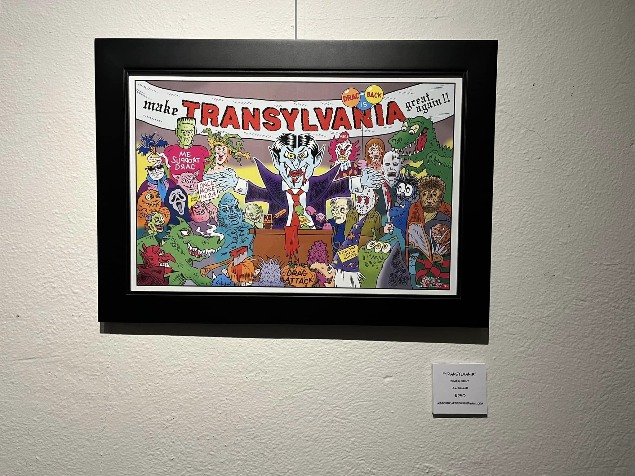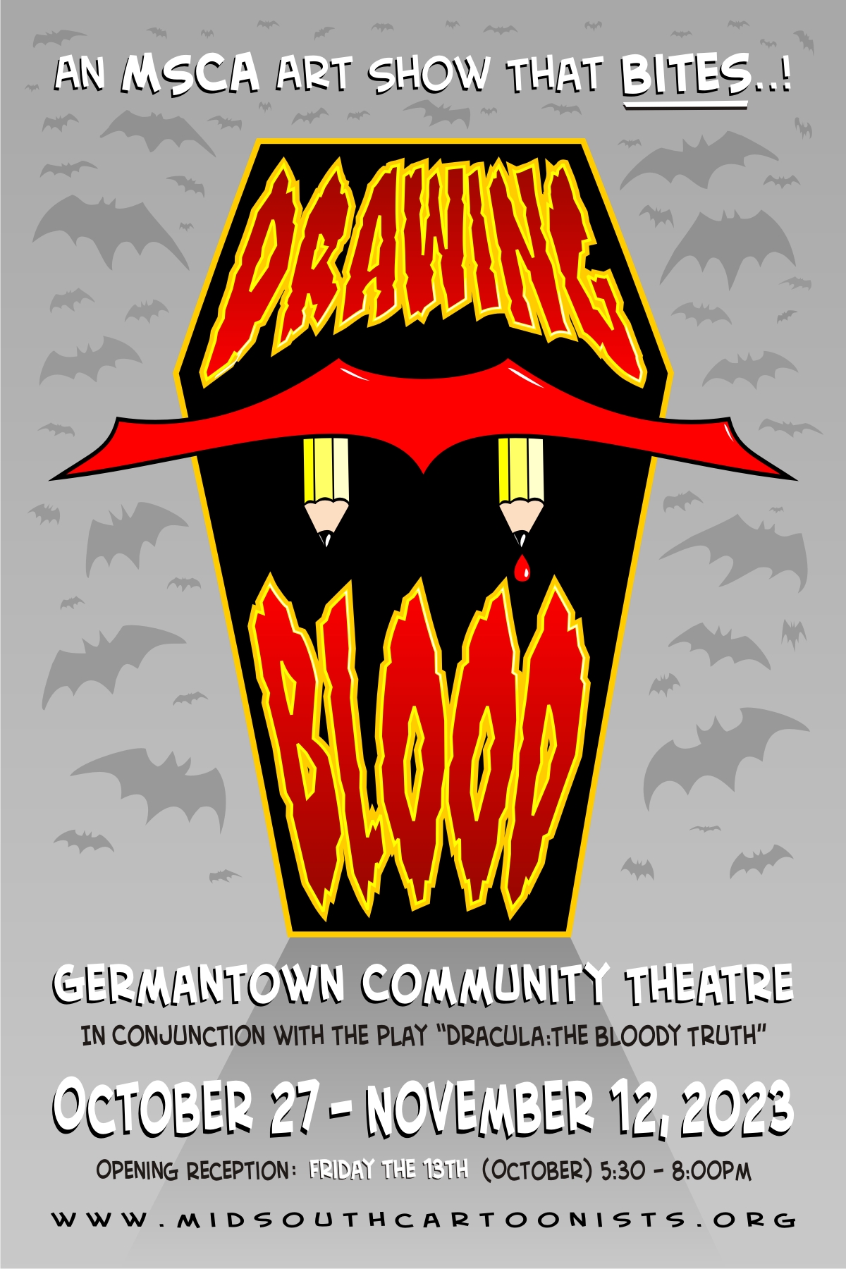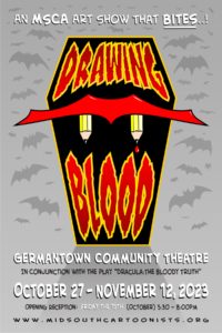 Actually, you should go take a look! My 2 recent Monsterpieces are part of the Mid-South Cartoonists Association‘s “Drawing Blood” art show at Germantown Community Theatre.