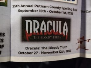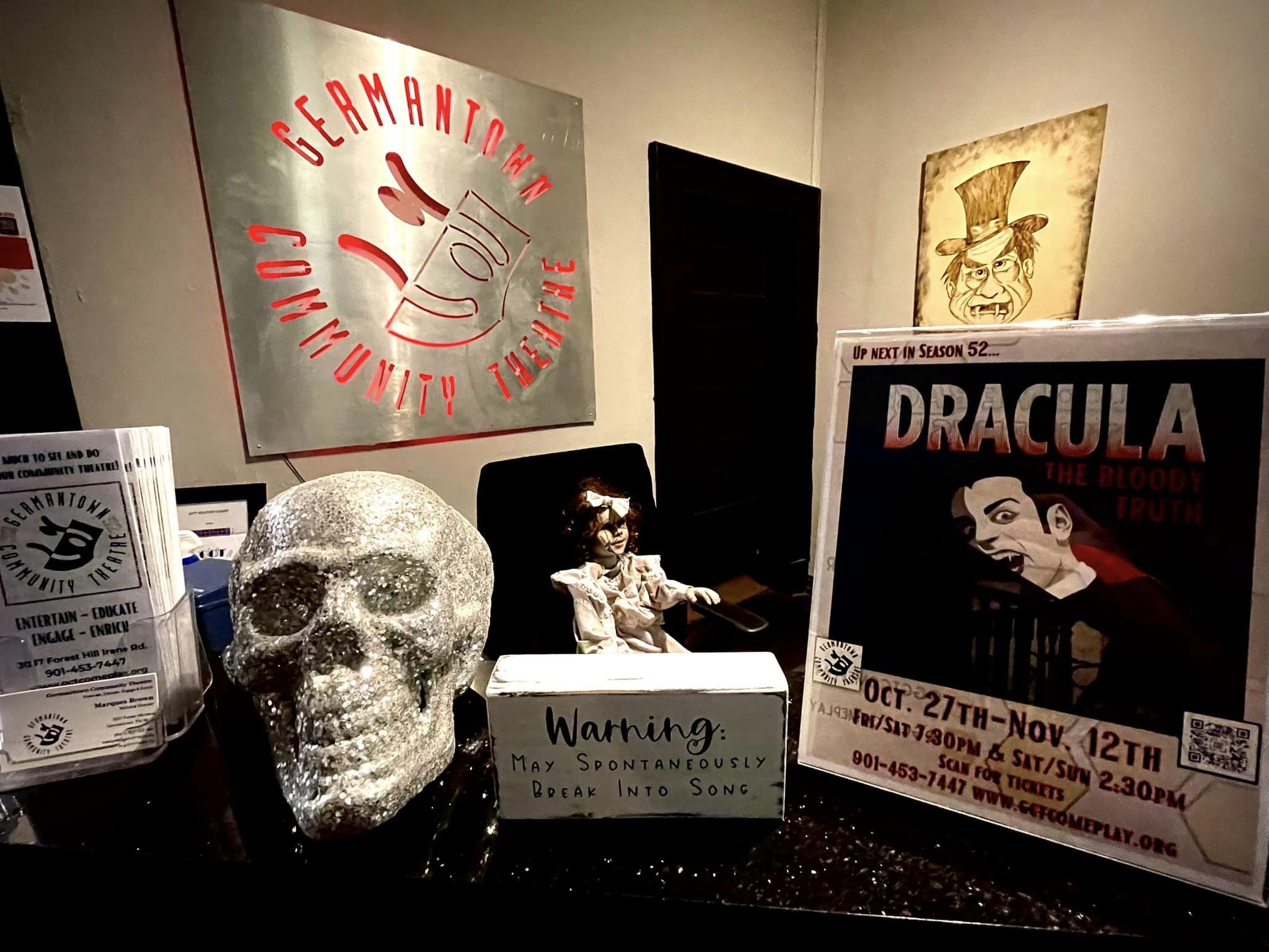 It’s in the lobby of the GCT and runs in conjunction with their play, “Dracula: The Bloody Truth“, which begins it’s run tonight, and goes through November 12th.