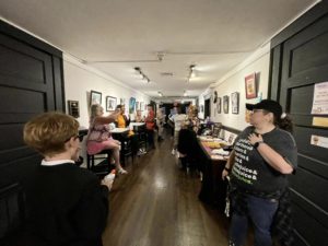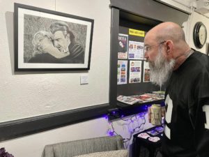 Charlie sold his “Miss Lucy” ink drawing that night- he’s very persuasive..!