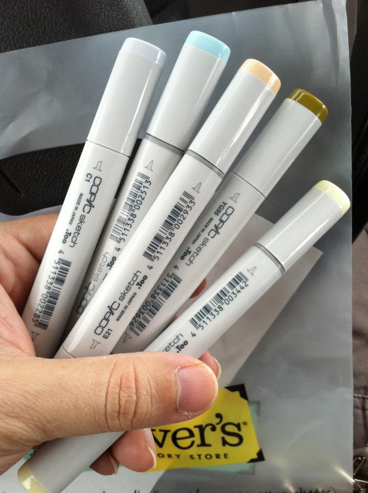 I was given a bunch of various marker sets by my friend Vicky, some Letrasets and Prismacolors from my mother-in-law, and my wife buys me Copic markers and refills.