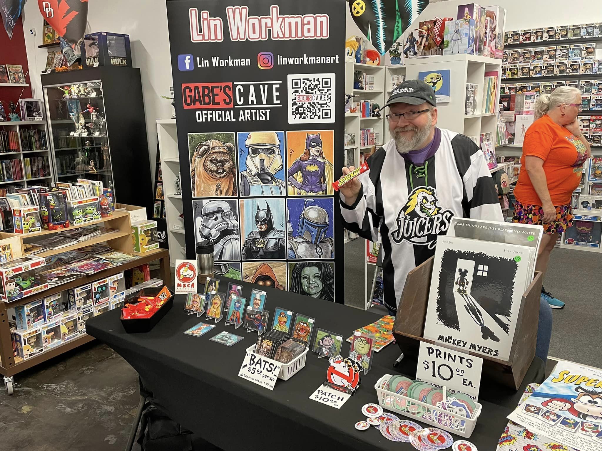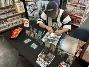 I’ll have my new BATS! trading cards set for sale, as well as some personal sketchcards, prints, and stickers.