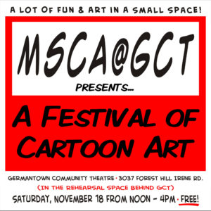 A few days later on Saturday I’ll be at the MSCA’s mini-con at Germantown Community Theatre in the rehearsal space behind the theater from noon-4pm..