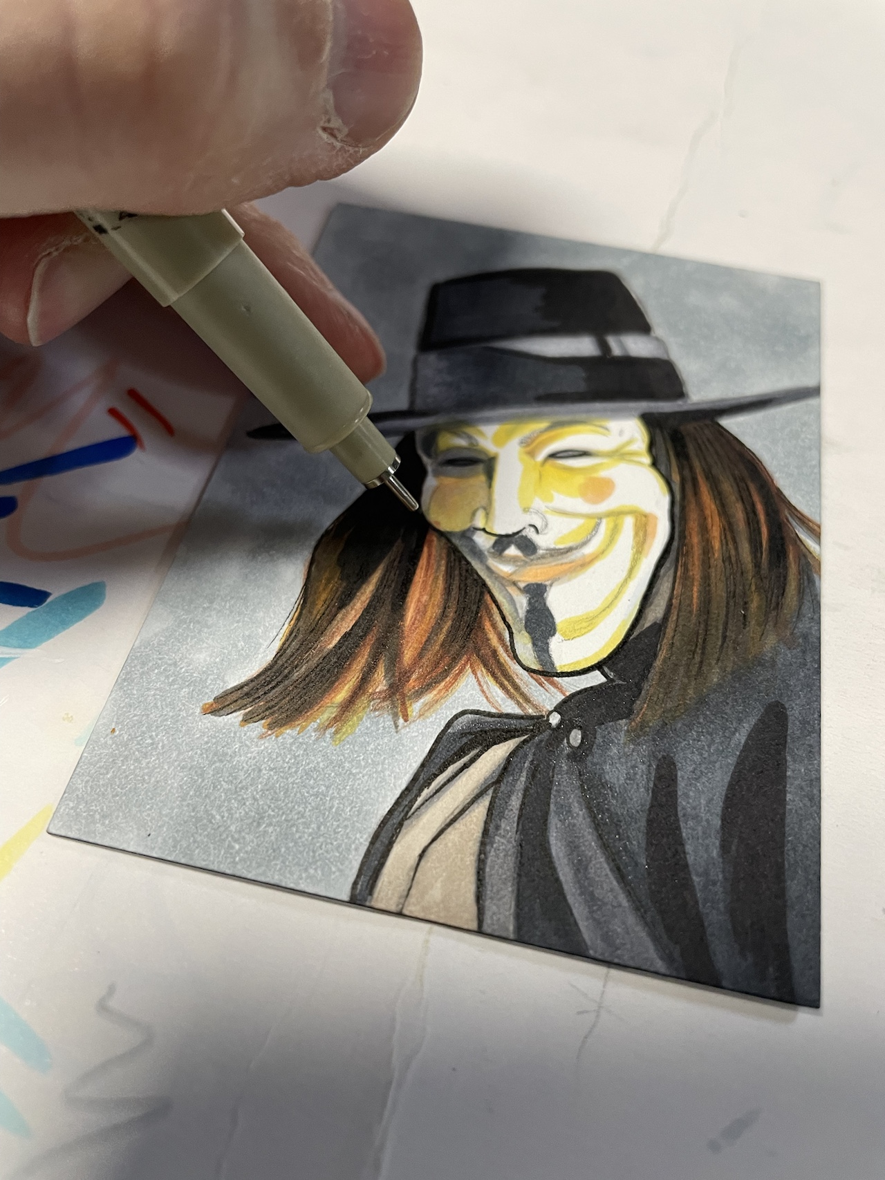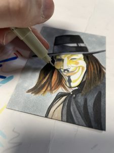 I then did some line work with a black Pigma Micron pen. I usually us an 03 pen.