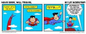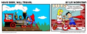 I’ve done a few other Super-strips for HGWT since then for fun, as well as some other superhero drawings/paintings in that cartoony style.