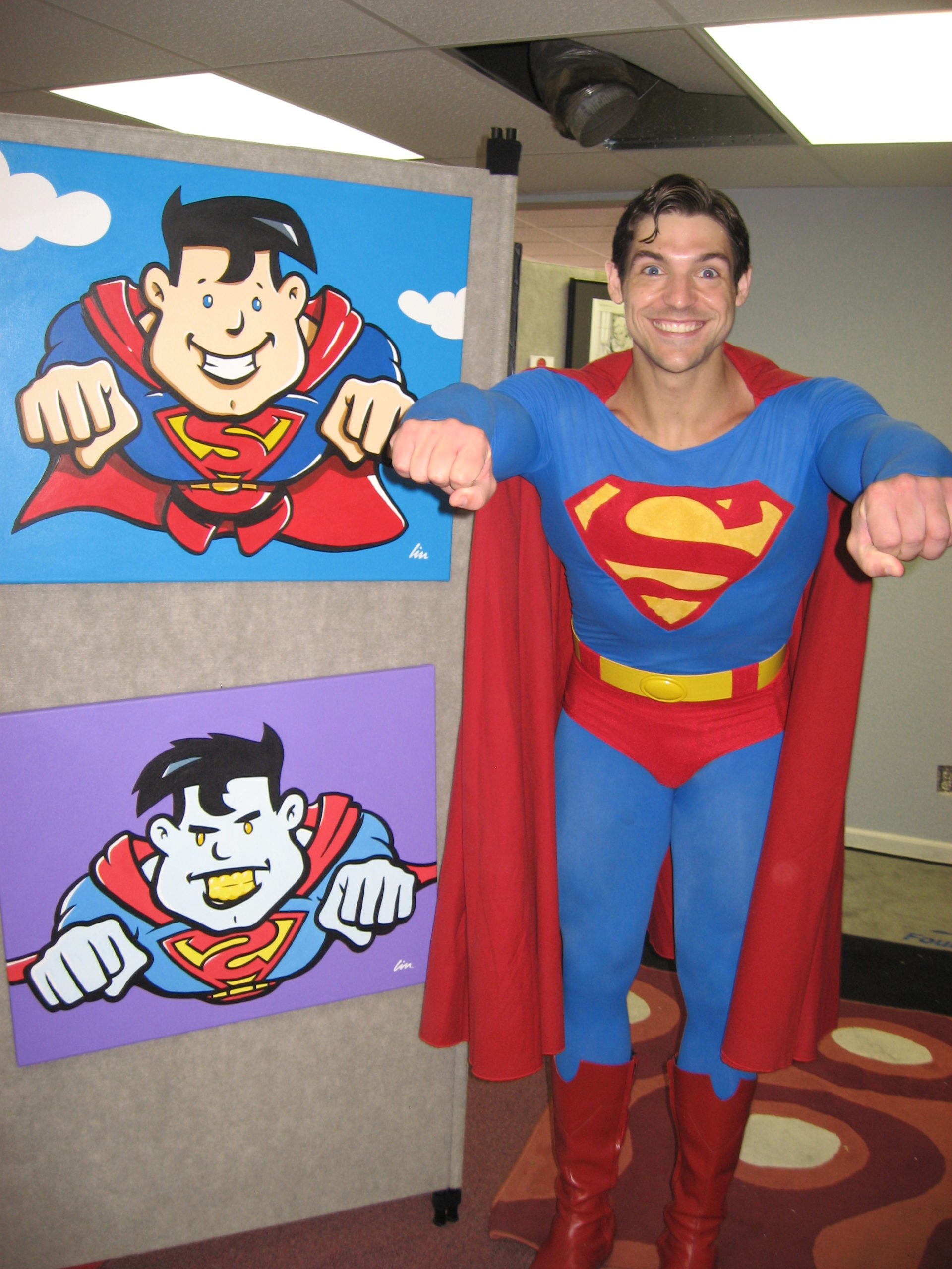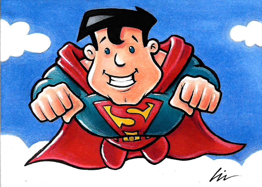 The first one was a flying Superman in my fun “Super-kid” cartoony style.