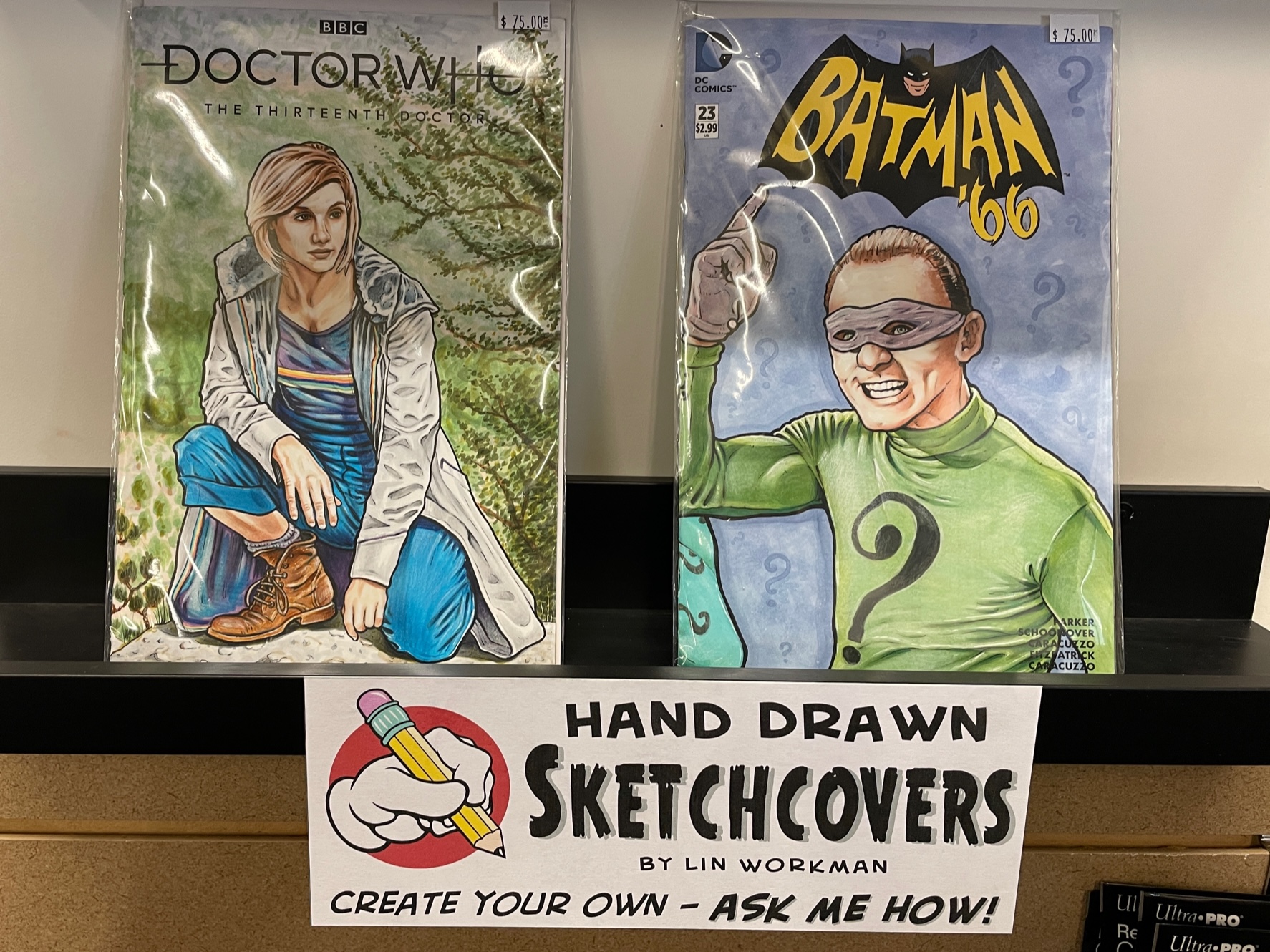 We also have a couple for sale that were done by comic artist Jerry Bingham (“Batman: Son Of The Demon”) back when he was in the shop.