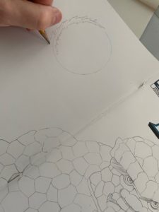 I then used a black Pigma Micron pen to do the line art. I had to use an 03 because I couldn’t find any of my thicker 05 pens.