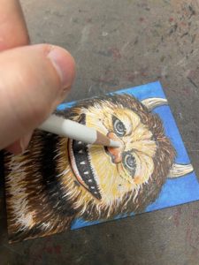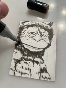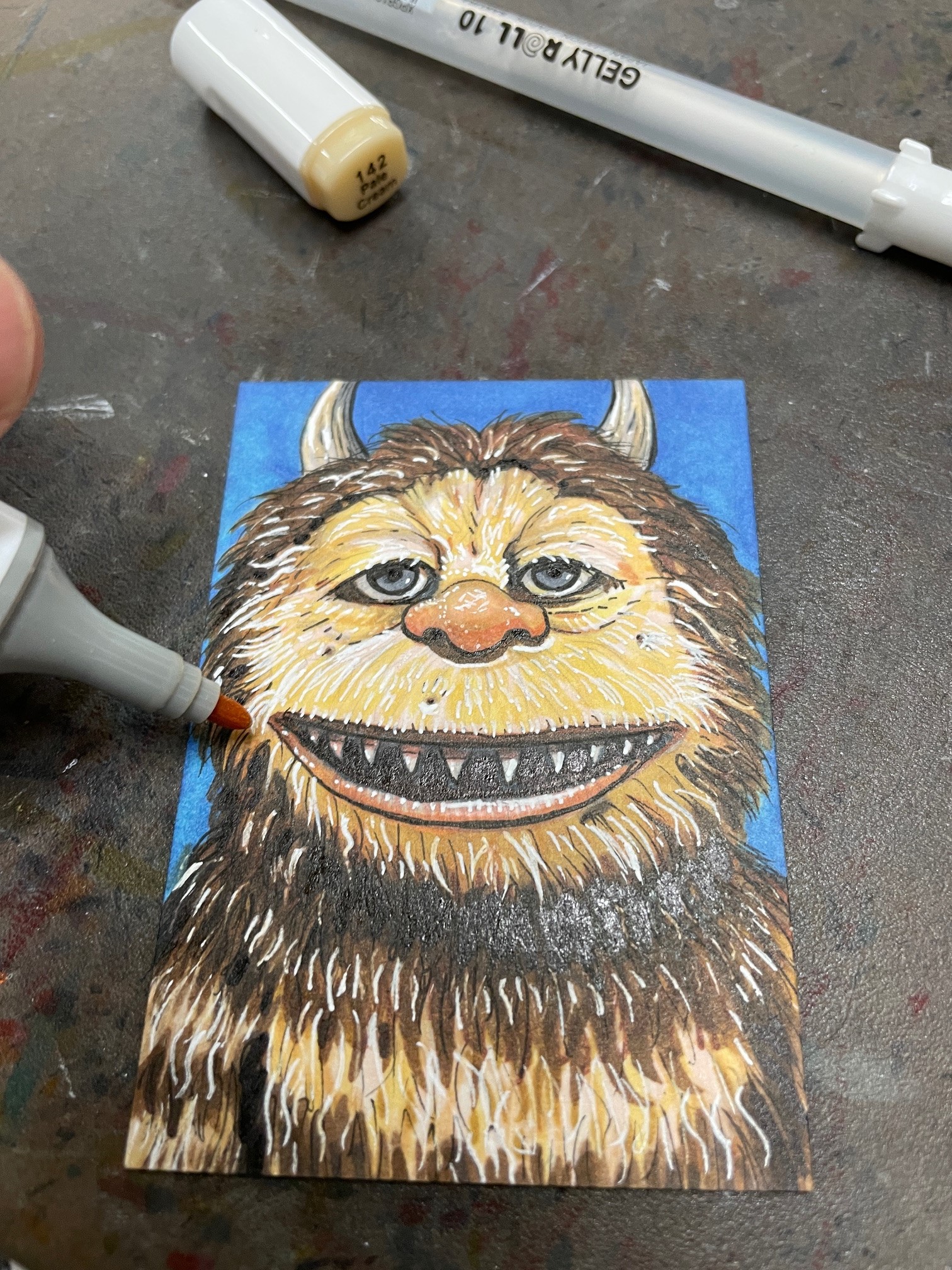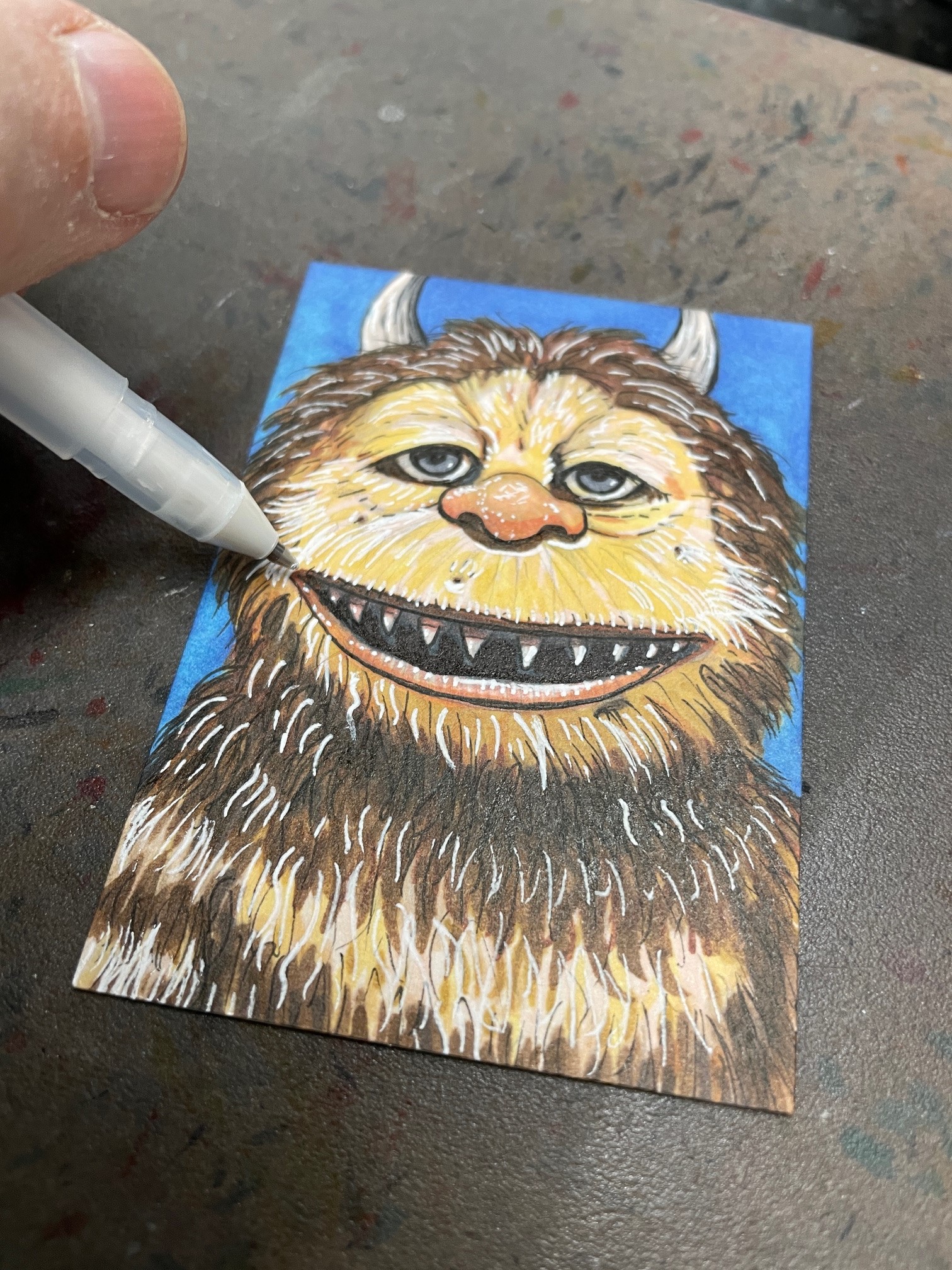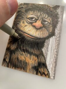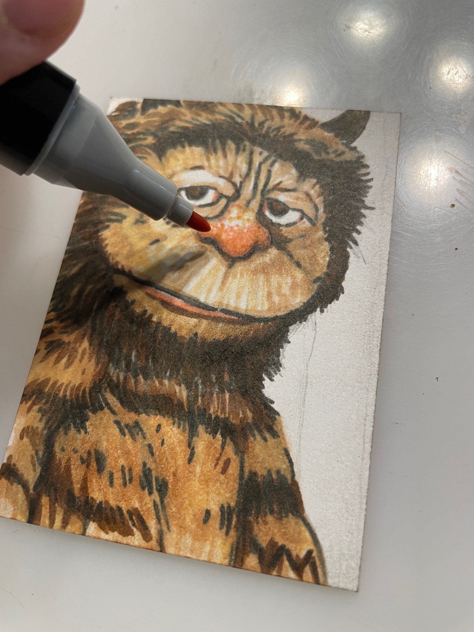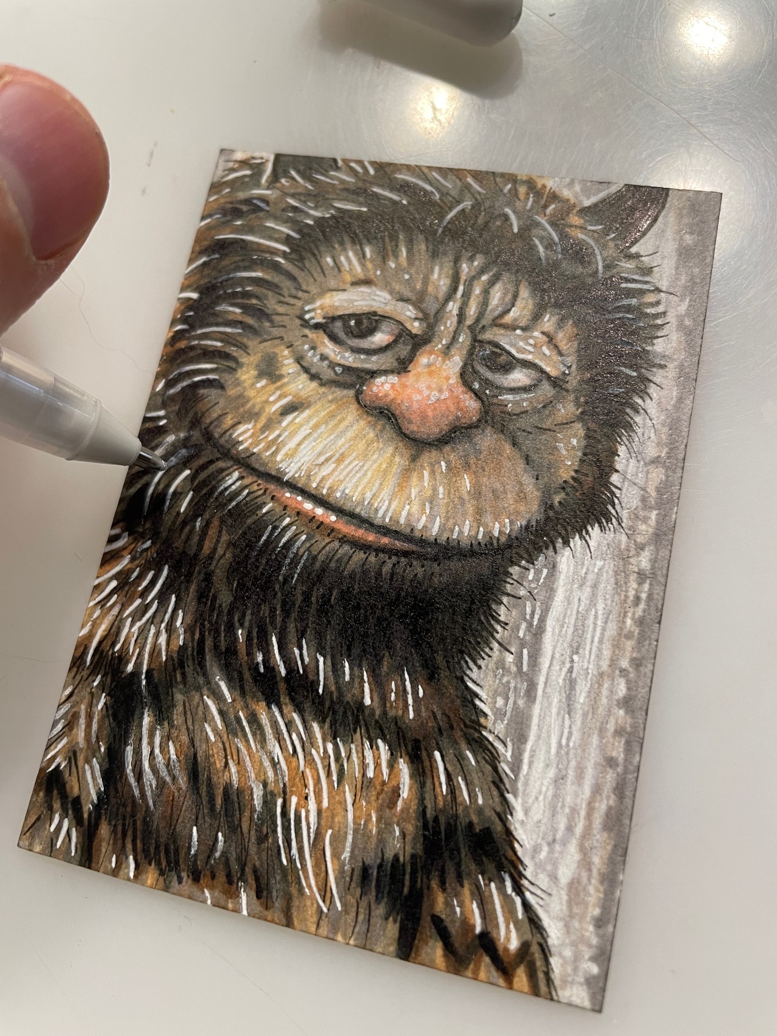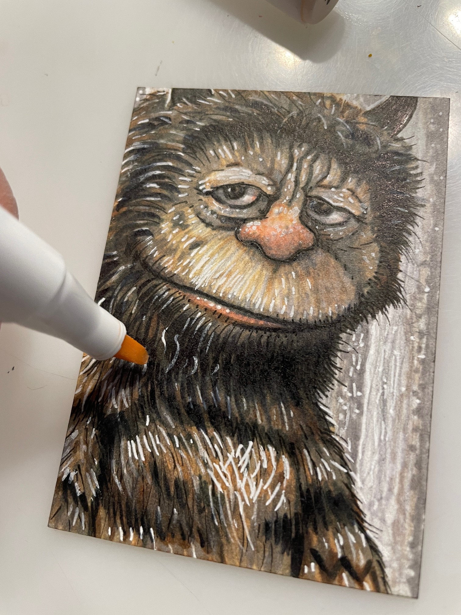 I used a white Gelly Roll pen to bring out some highlights on his fur, and then a beige marker to tone them down a bit.