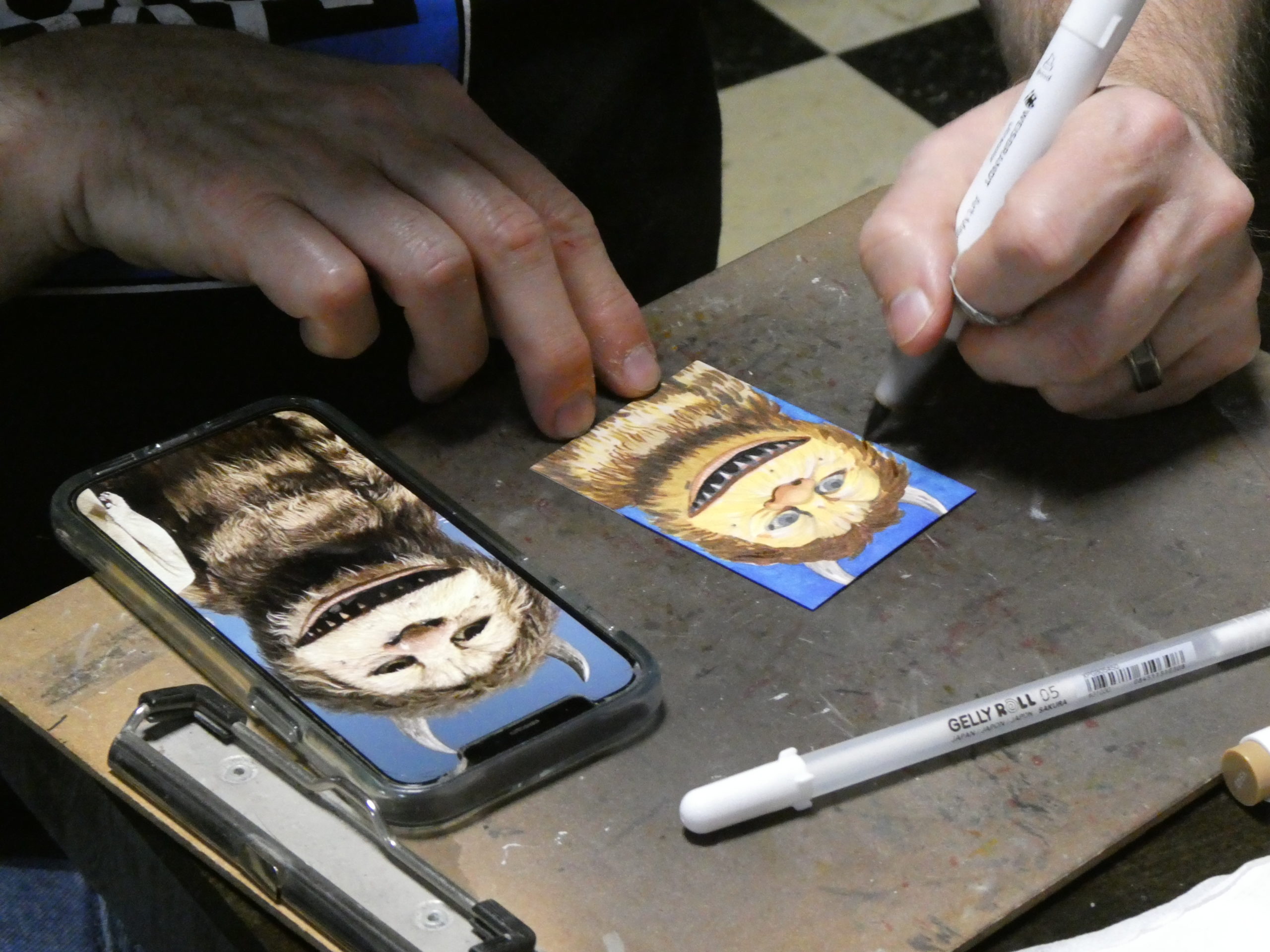 Plus it’s not only hard to keep an eye on your table, but with your head down potential customers are sometimes too afraid they will interupt your drawing if they come over and decide to just keep on walking. You can miss sales like that as well as miss a lot of fun stuff going on around such as cosplayers, guests, and folks you may haven’t seen in a while. Always great to have someone else with you at your booth, and to take a break from drawing once in a while to enjoy the event.