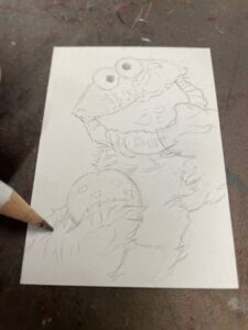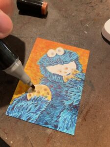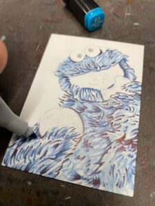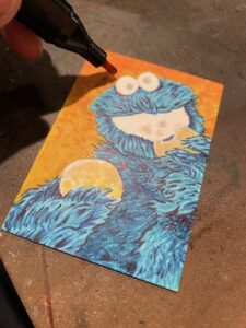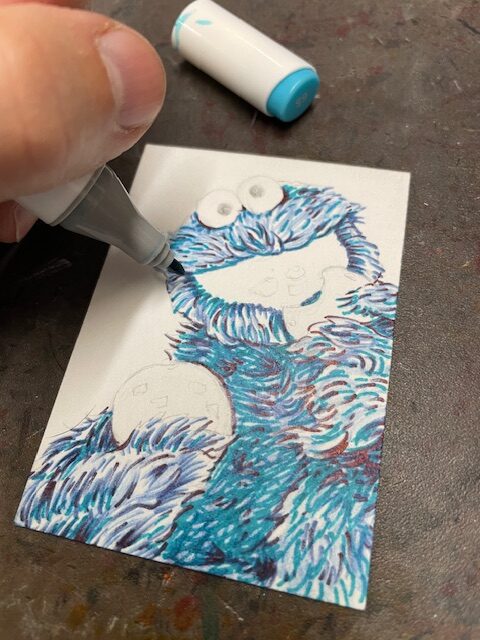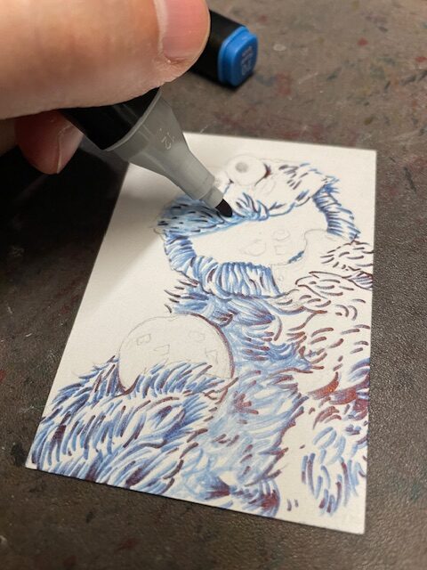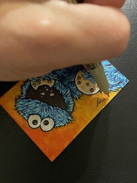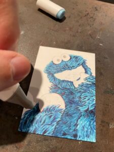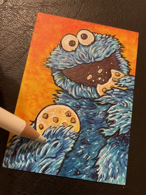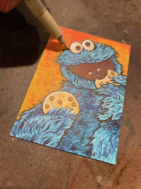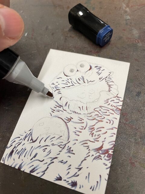 This time I drew a Cookie Monster sketchcard. Started off with pencil on one of my custom blanks.