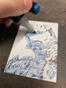 Once I was finished with the blues, I then I used some gold, orange, tans, brown, and black markers.