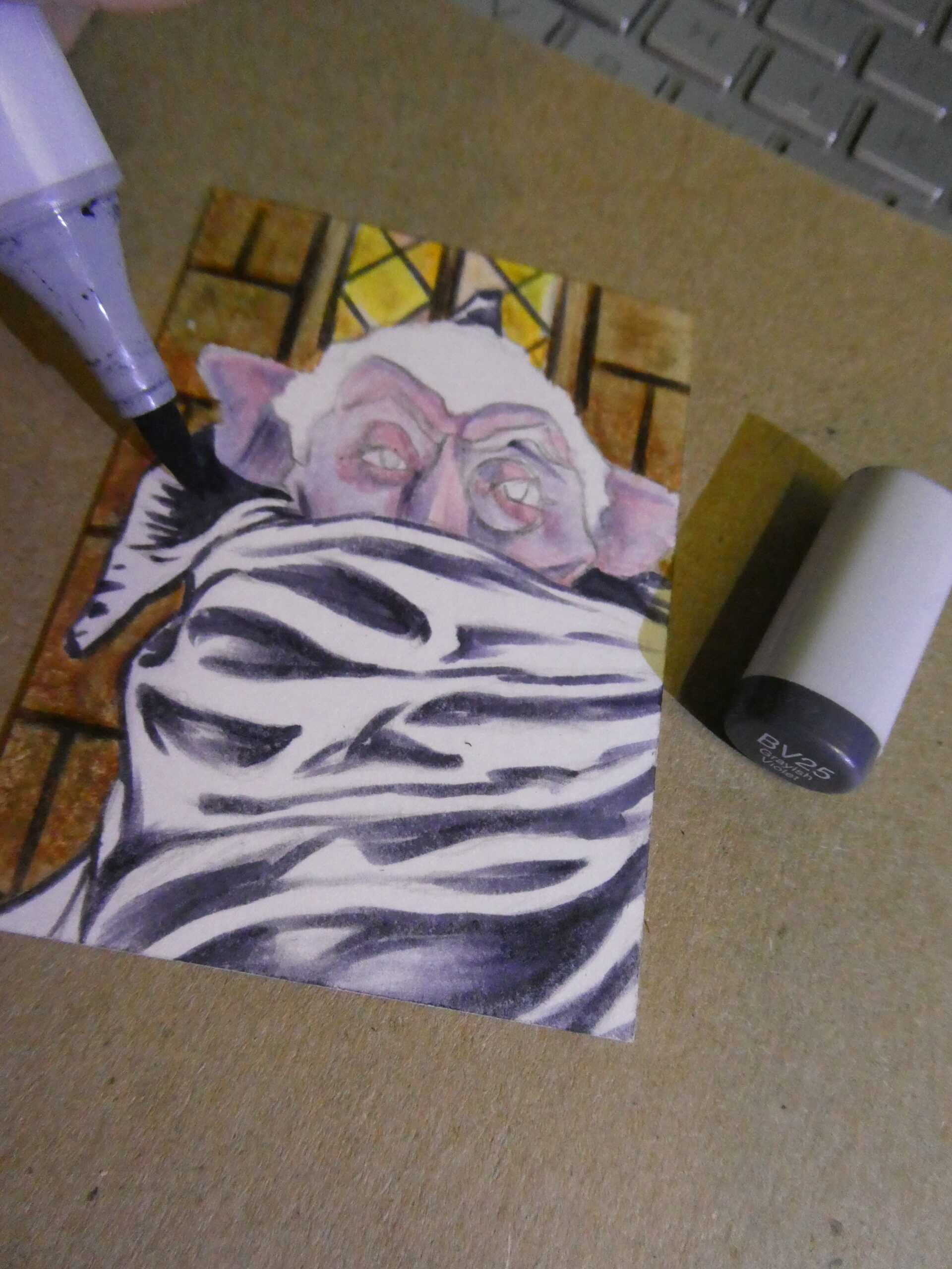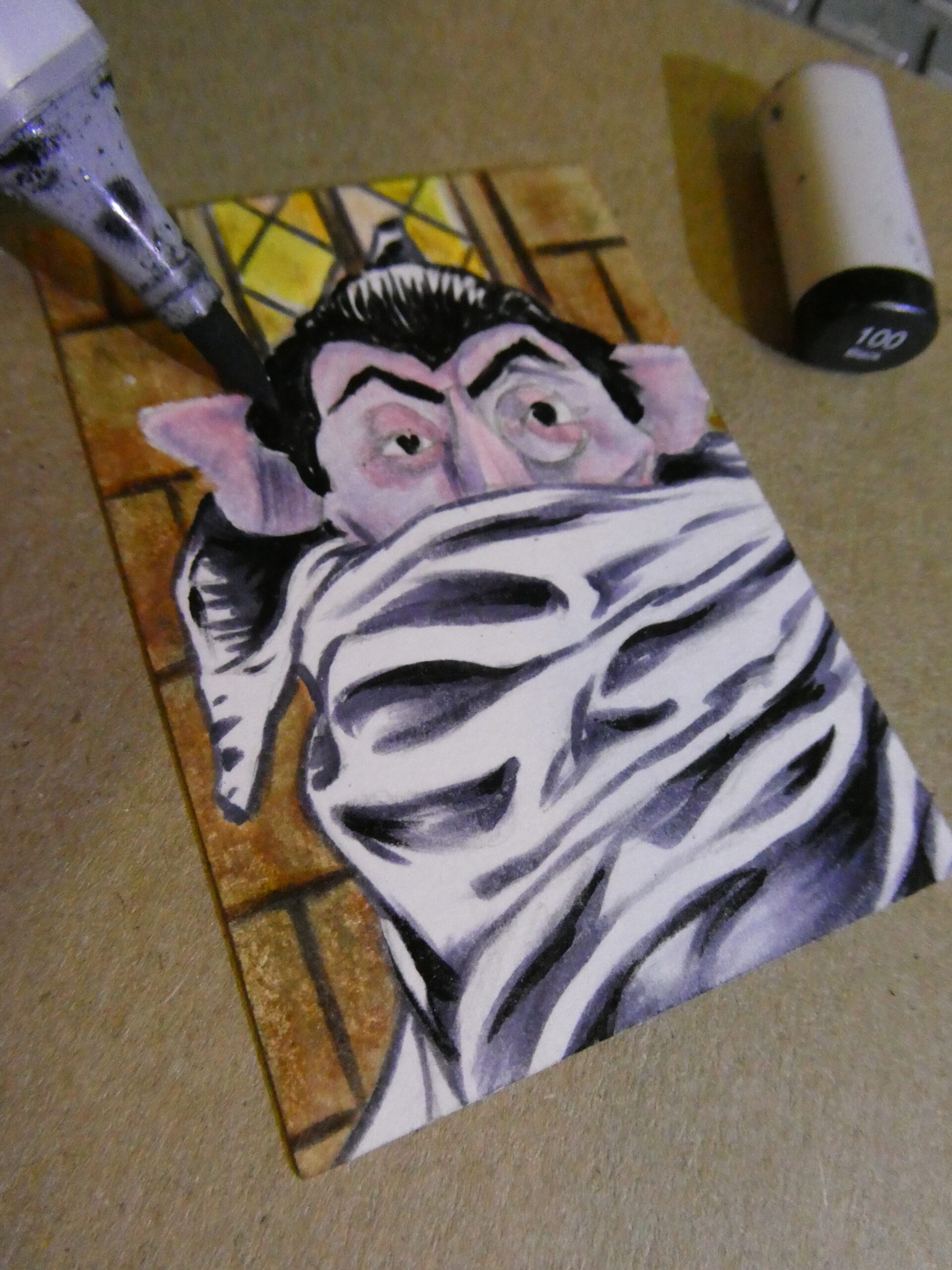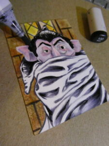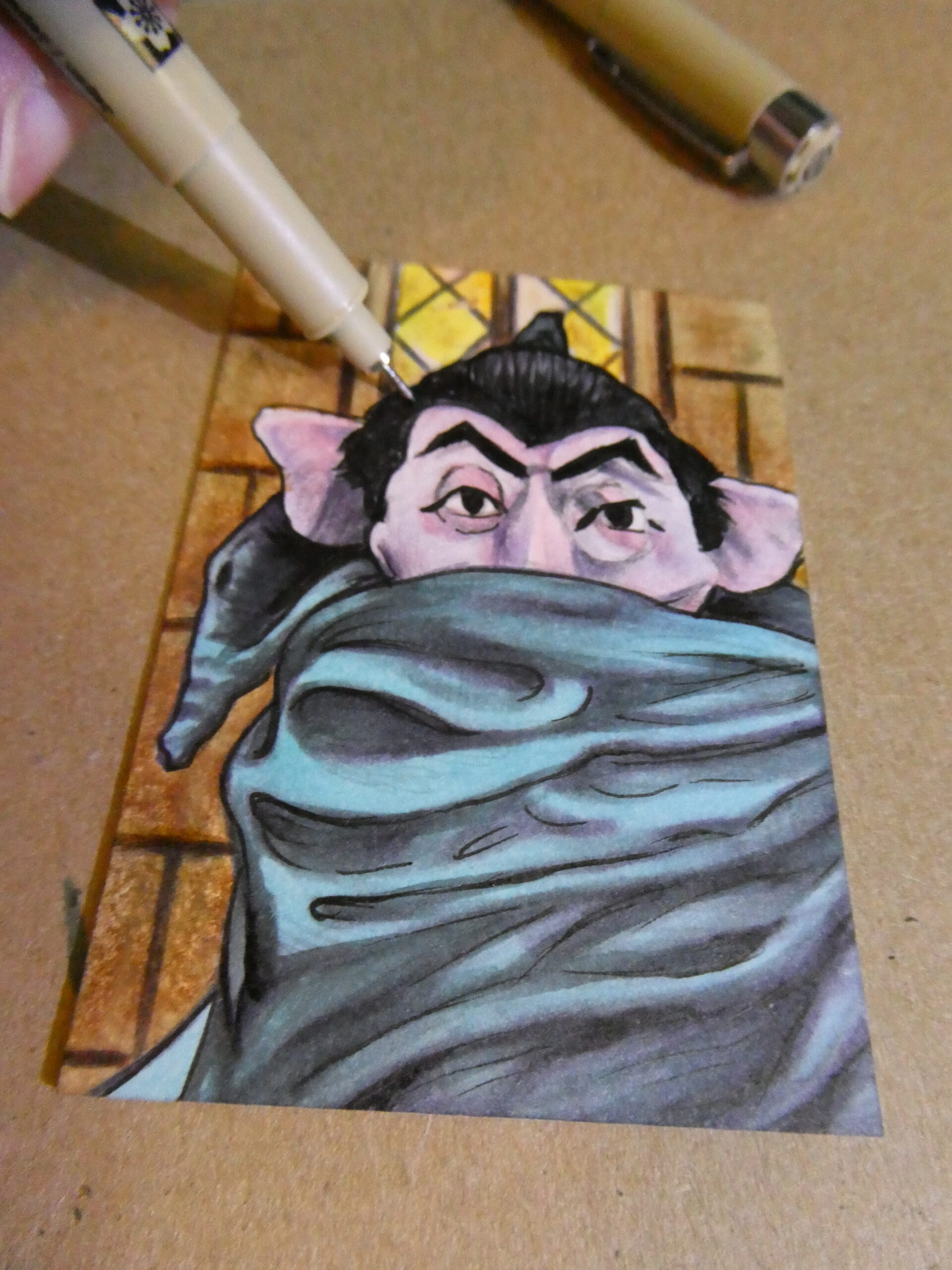 You can see my previous Count card here, and Oscar here. Up next is my Beetlejuice-Beetlejuice sketchcard..!