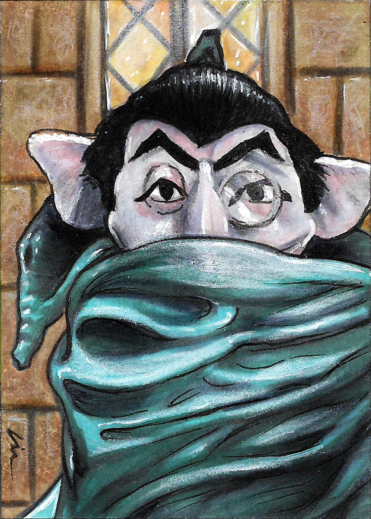 I’ve drawn several Muppet sketchcards in the past, including Count Von Count and an Oscar the Grouch for my wife Nicki.