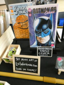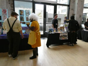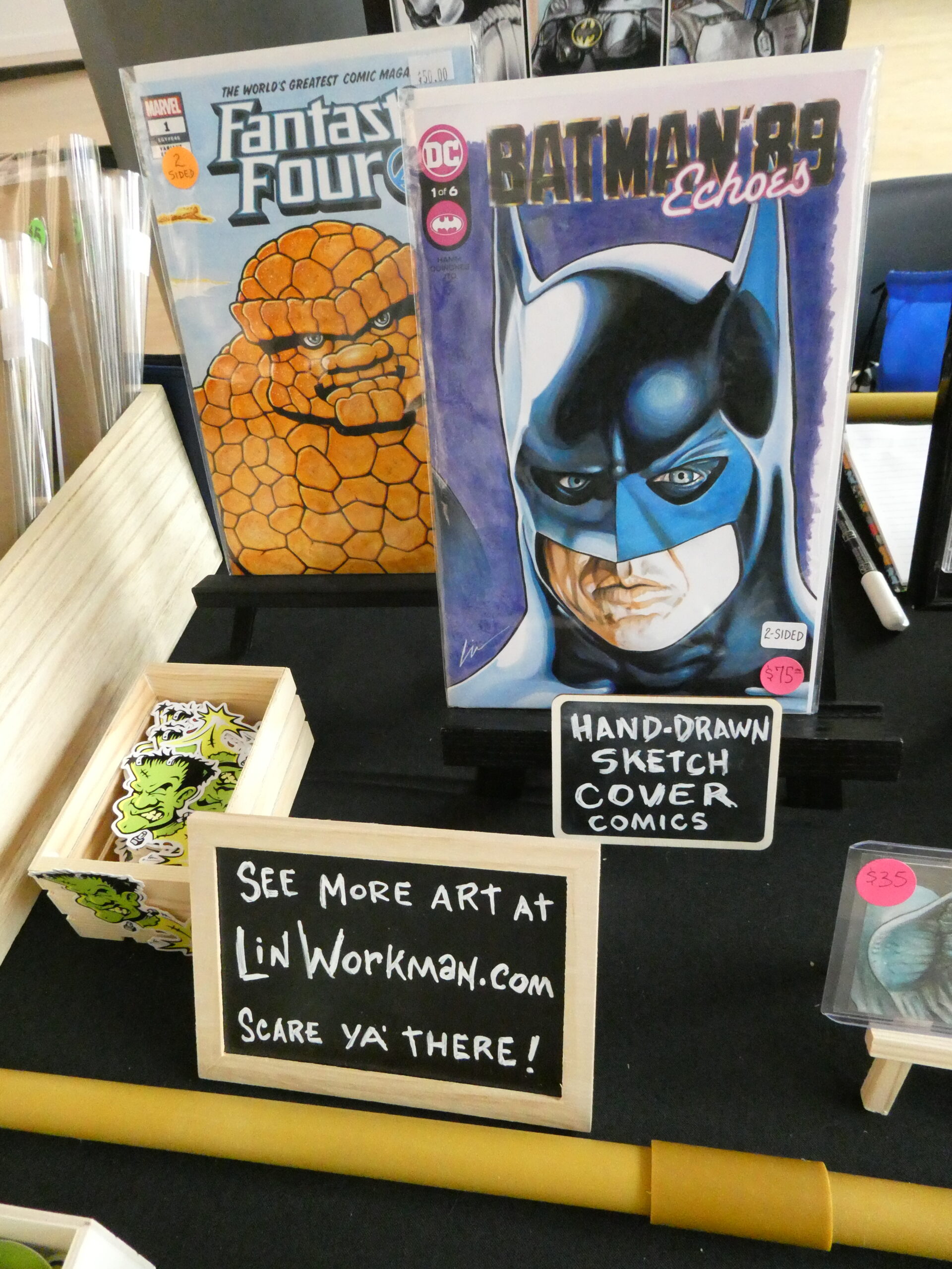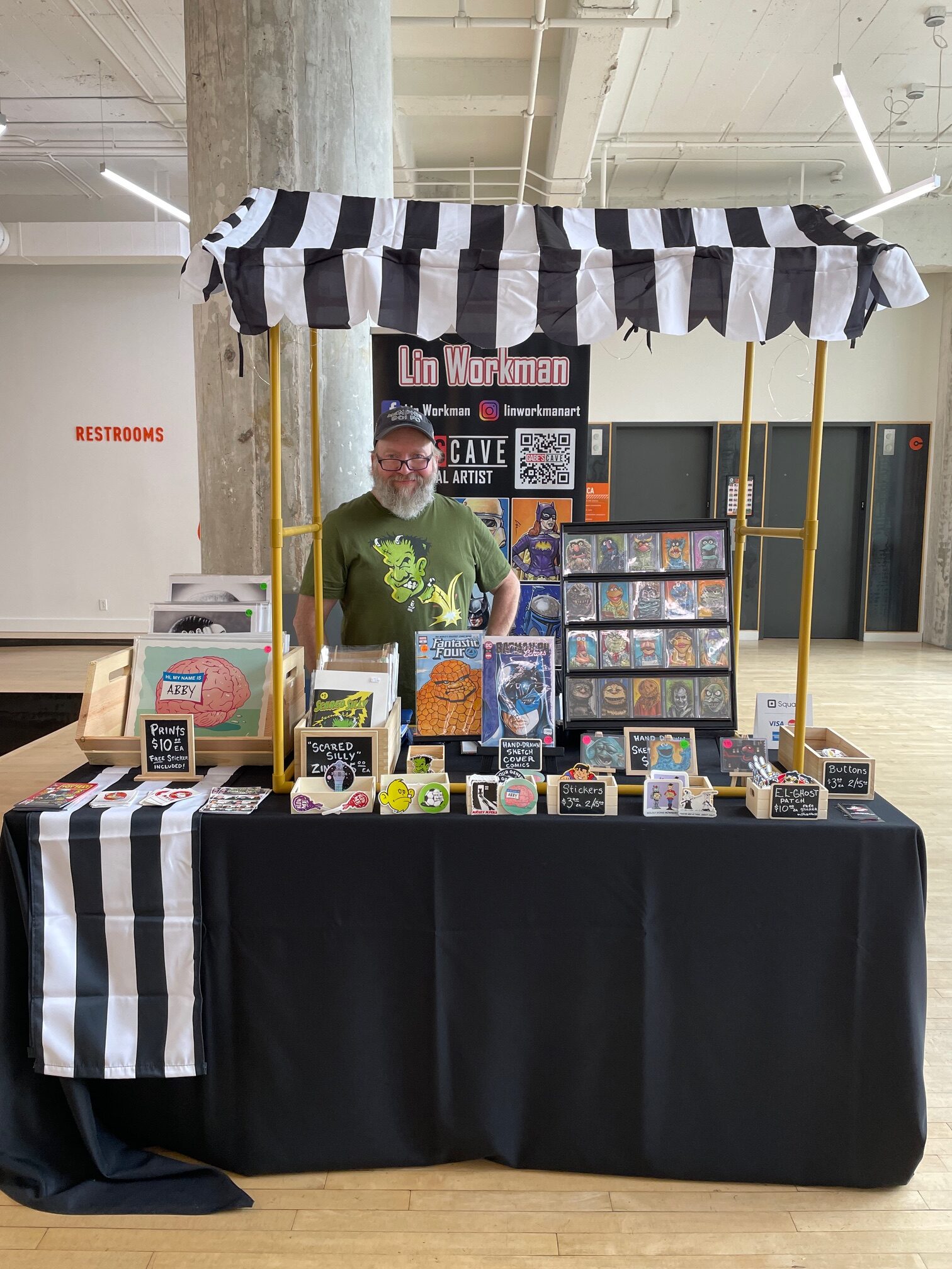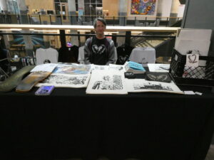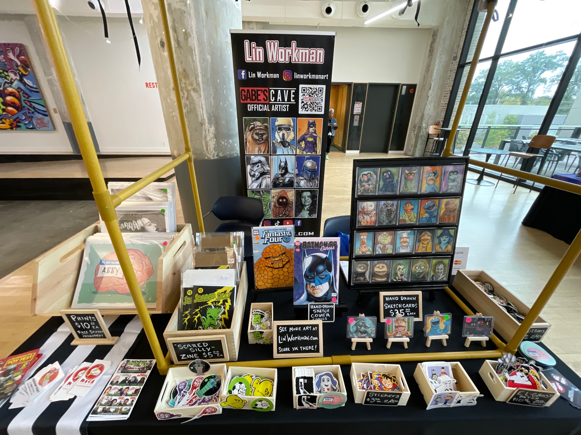 I attended last year (click here to see those pics), but this was the first time I had ever set up at this event. I had a table upstairs with my new “Scared Silly” zine. I’ve printed sketchbooks and have participated in previous zines, but this is my first solo zine issue. I plan on doing another horror one, and then follow that up with a sci-fi one.