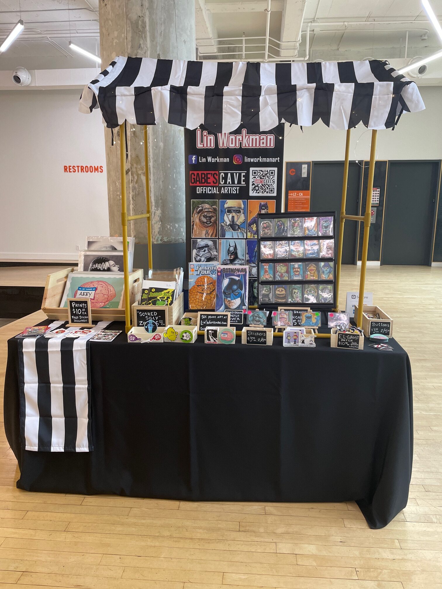 I was proud that I was able to get the whole set up not only from my car to my space in one trip, but that everything also fit in my car’s truck, too! I’m hoping this will make setting up at shows less of a hassle for me. Going to buy a new duffle bag for the awning, tablecloth, and runners. I want to try and keep my con stuff better organized going forward. I always feel like I’m forgetting stuff and I hate getting ready last minute. Hunting for things to take can add unnecessary frustration and stress.