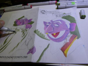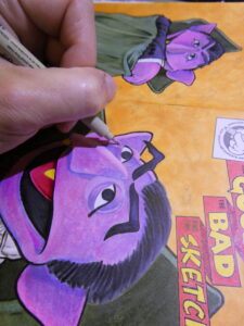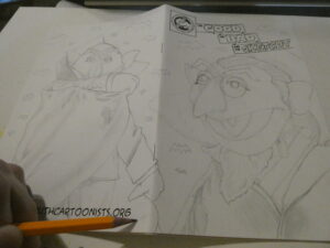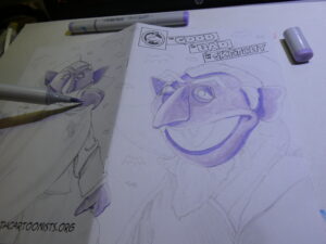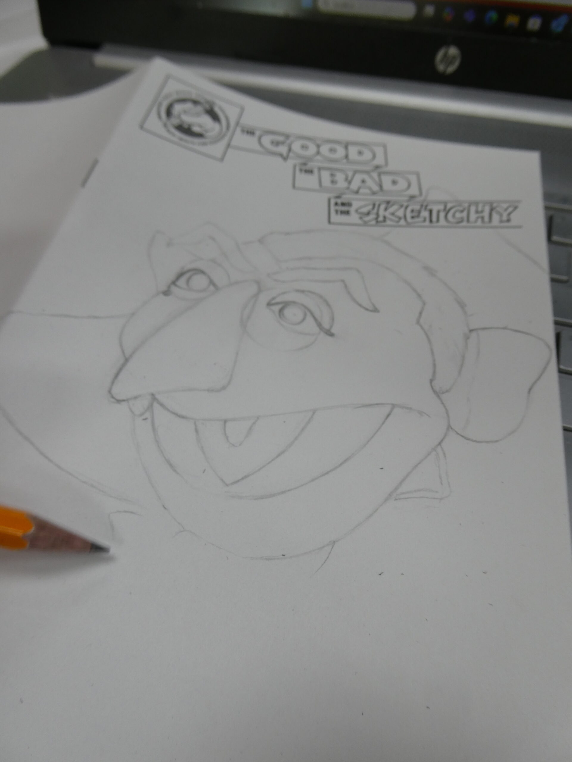 This one was fairly simple so like the other Muppet sketchcovers I just drew this one freehand at the event from reference photos I had on my laptop. I’ve got several reference files saved on my computer. Sometimes I’ll google a subject on my iPhone to draw from, or bring along a reference book. I’ve got several Star Wars, Doctor Who, and super-hero reference books around the house.