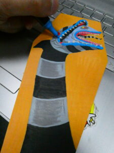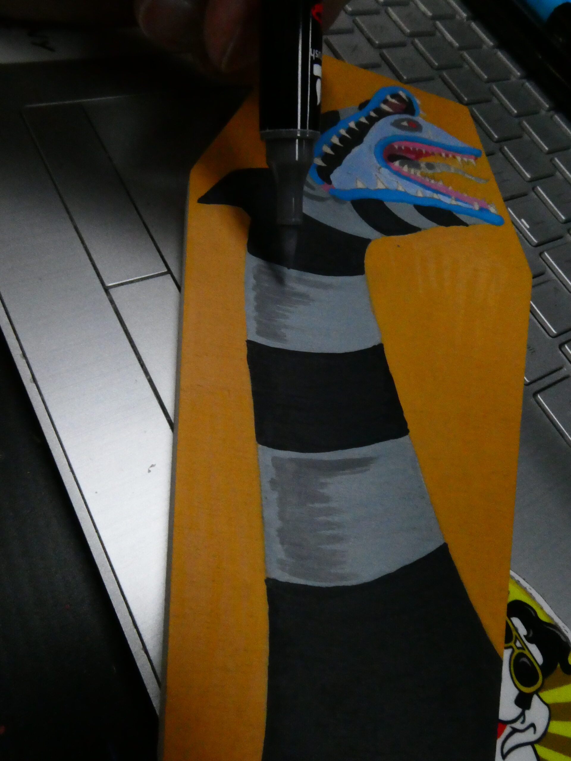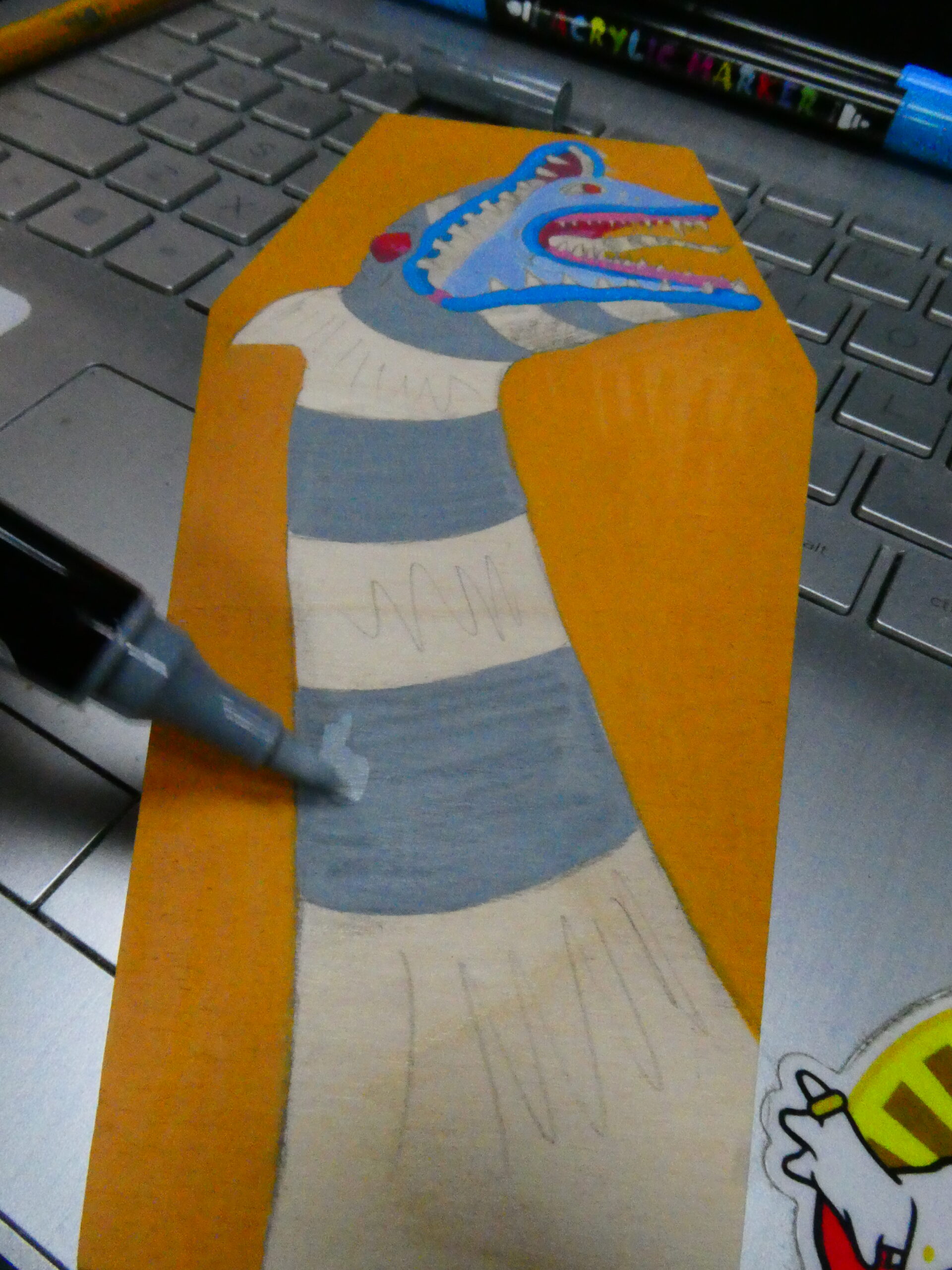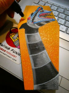 Then worked on the body and tongue with a light and dark/charcoal grey, some of my IVSUN markers. I bought a set of them on Amazon when I bought the Sharpies. I picked up another set of Sharpie Creative Markers at Walmart yesterday- an earth tone set this time.