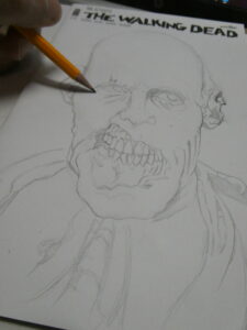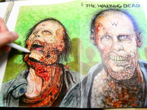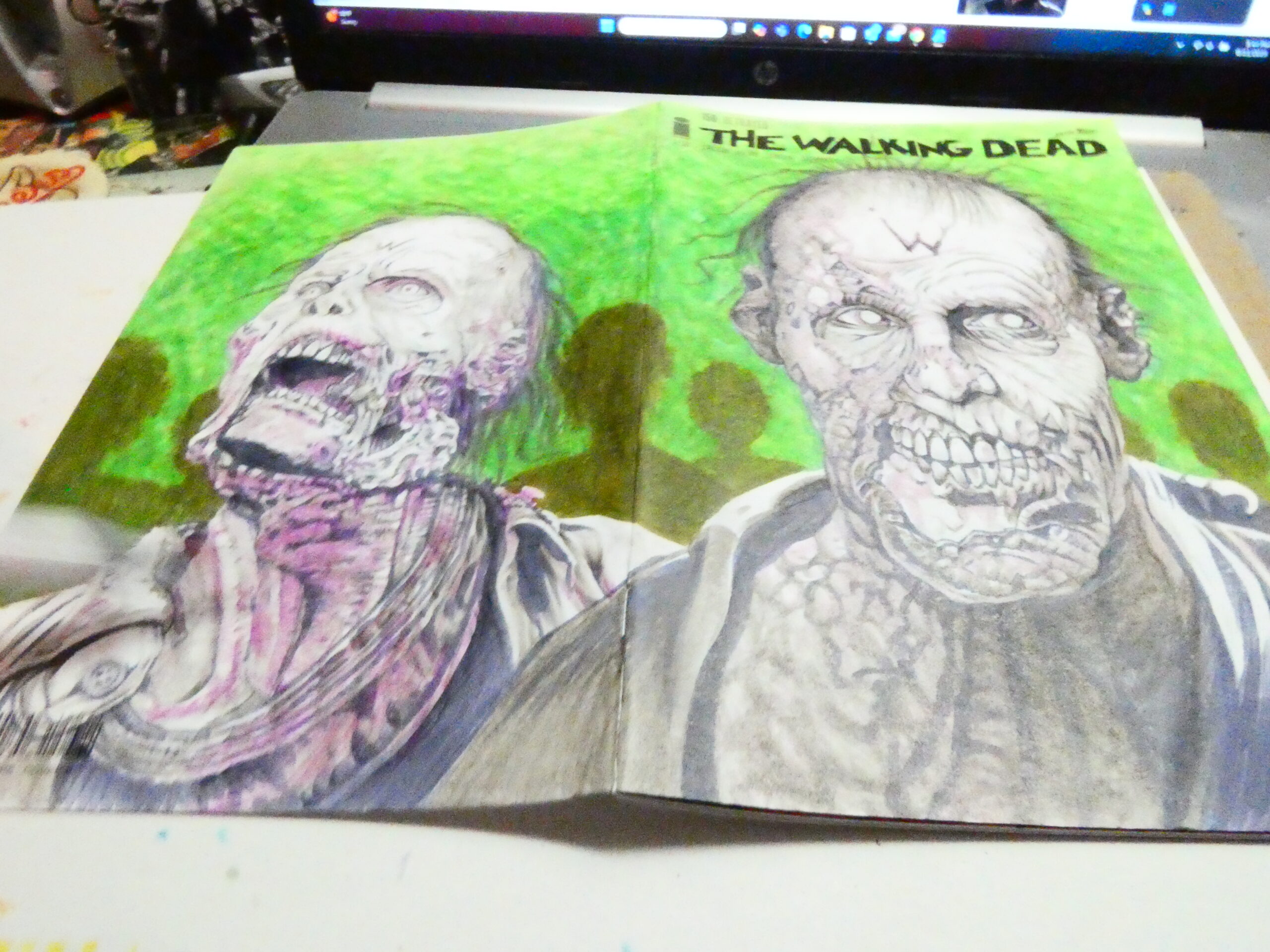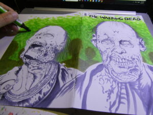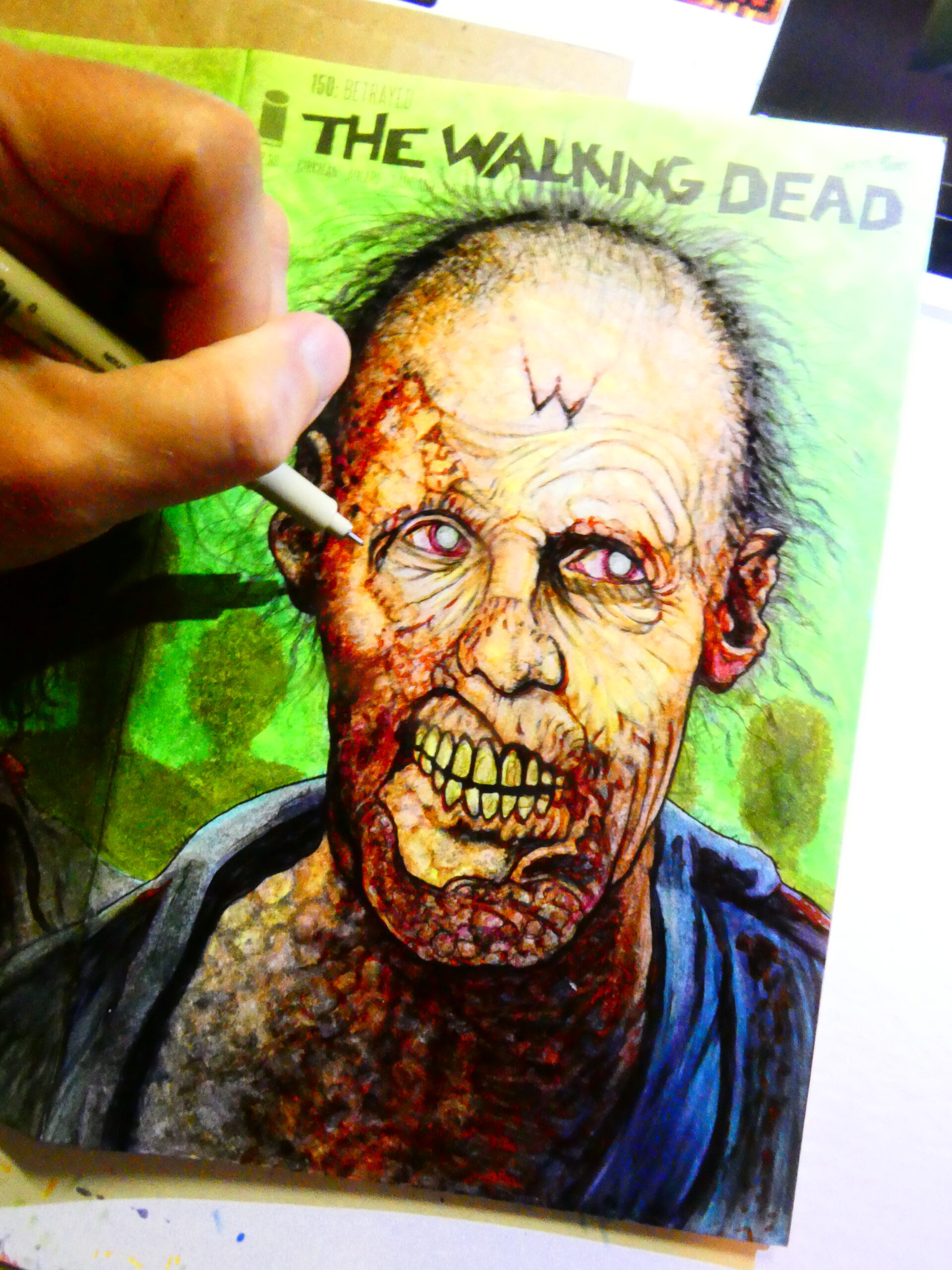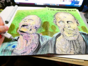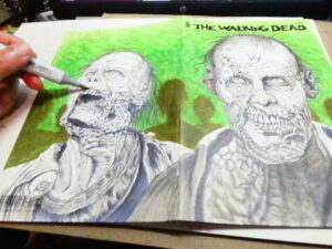I drew this sketchcover on an issue of “The Walking Dead“- #150 to be exact. I’ve got a few TWD blanks and I’m hoping the “All Out War” coverstock is betting than this one. I wasn’t thrilled with the way the markers worked on this one. I got it to work, but it took me a lot more to make it work than it should have.