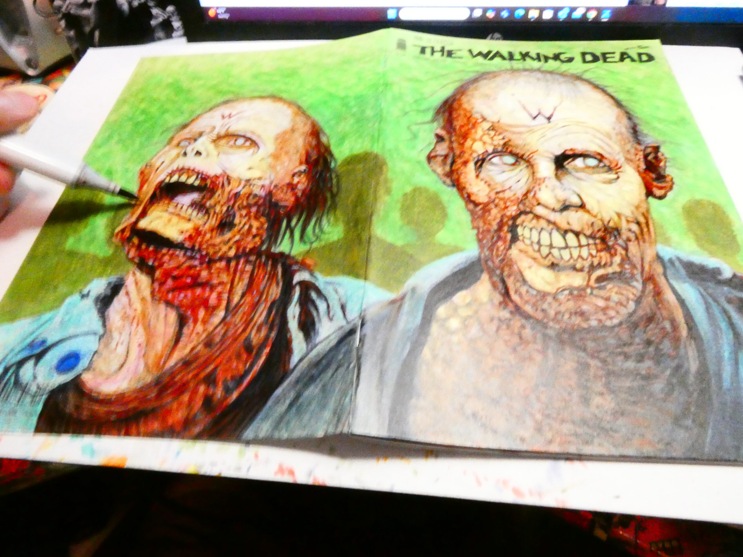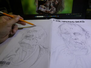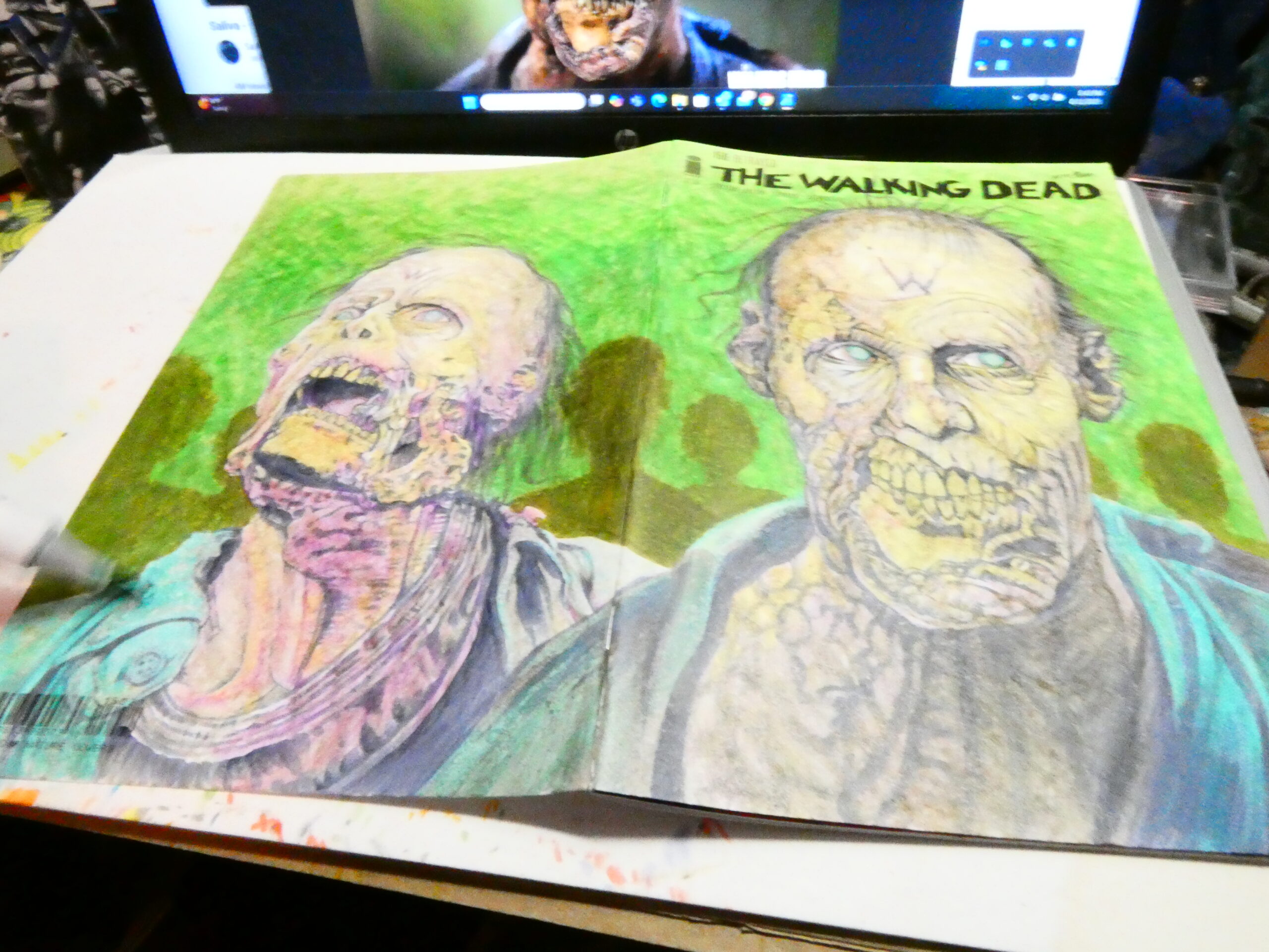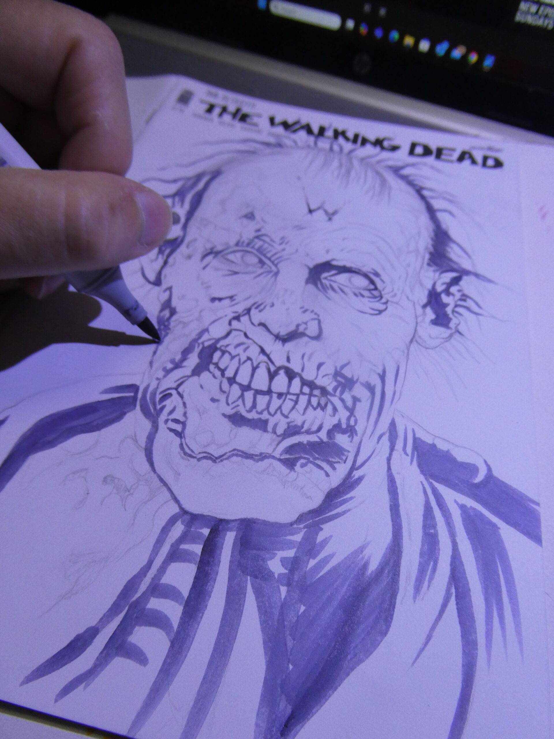 I drew this sketchcover on an issue of “The Walking Dead“- #150 to be exact. I’ve got a few TWD blanks and I’m hoping the “All Out War” coverstock is betting than this one. I wasn’t thrilled with the way the markers worked on this one. I got it to work, but it took me a lot more to make it work than it should have.