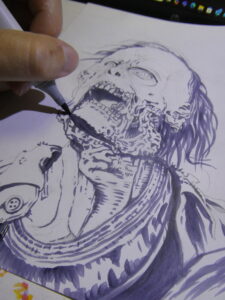 Once done I sign the comic and then do a protective spray of the fixative. It’s best to do several overlapping light coats than a heavy one. It’s also best to spray it outside or in a well ventilated area.