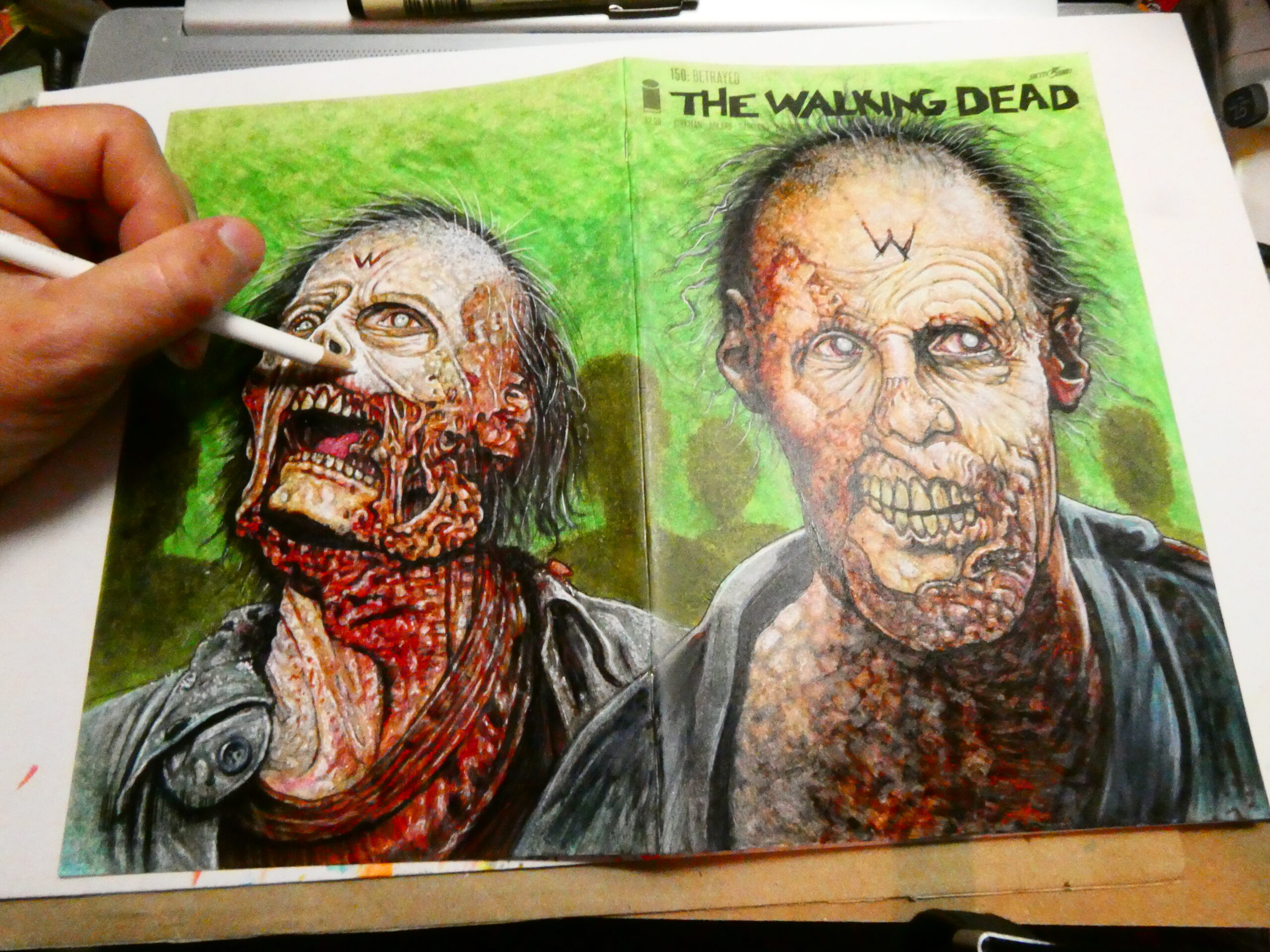 It’s a “The Walking Dead” sketchcover and will be a Monster Market exclusive at this year’s Halloween pop-up shop downtown. The “W” stands for “Workman” 😉