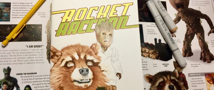 Hey, Gang- Since I did a Groot sketchcover before, I thought I’d add his partner in crime- and saving the galaxy, Rocket. I’ve bought several blank sketchcover comics over the past few years. They are regular comics with blank